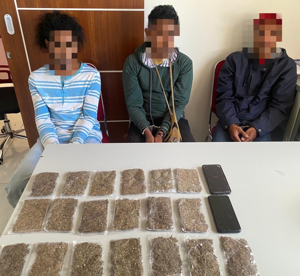 “Dari hasil pemeriksaan, Polisi mengamankan berbagai barang bukti yakni 19 sachet narkotika jenis ganja dengan berat 235,4 gram dan 2 unit hp”. Jelasnya.