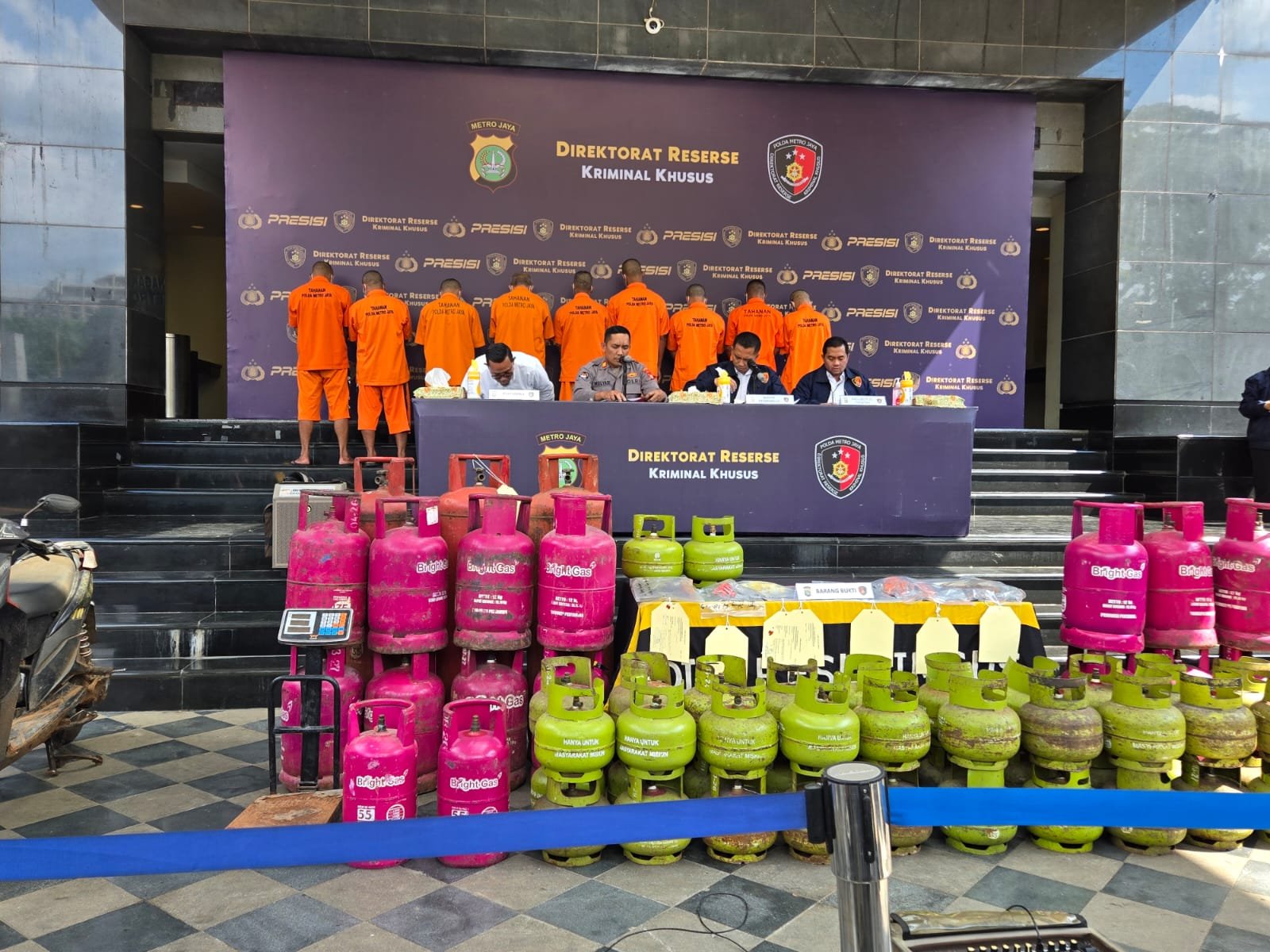 “Para pelaku memindahkan isi gas elpiji ukuran 3 kg (subsidi) ke tabung gas elpiji kosong ukuran 12 kg dan 50 kg (non-subsidi),” ujar Wadirreskrimsus dalam konferensi pers, Kamis (13/2/25).
