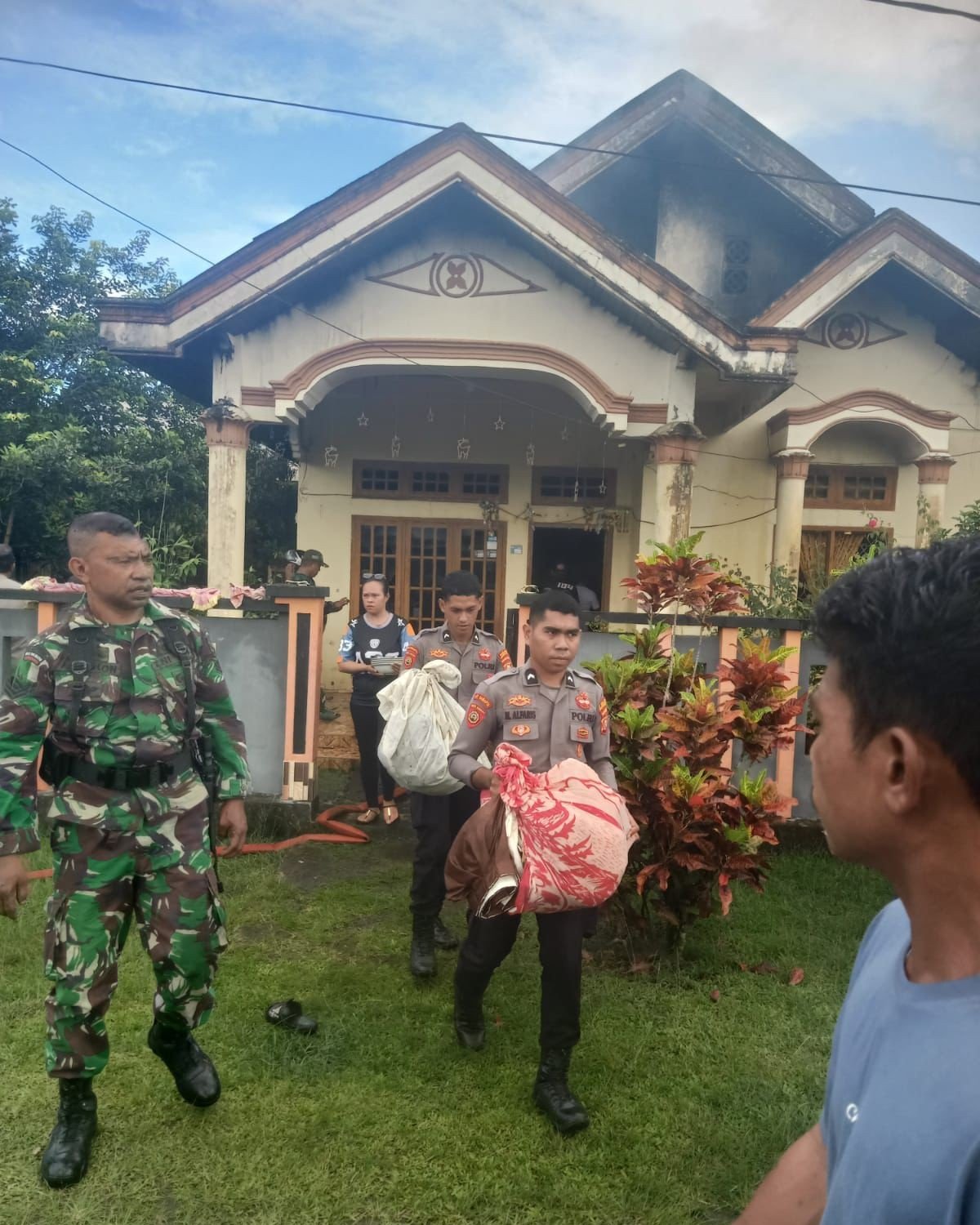 Personel Polres Halmahera Barat sigap menangani kebakaran rumah seorang warga di Desa Tedeng, Kecamatan Ibu, Kabupaten Halmahera Barat, Rabu (3/9/2025) kemarin. Berkat respons cepat, tidak ada korban jiwa dalam insiden tersebut.