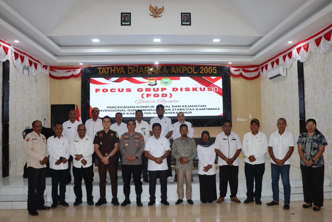 HUMAS POLDA MALUT – Dalam rangka upaya pencegahan konflik sosial serta menekan angka kejahatan konvensional guna mewujudkan stabilitas keamanan dan ketertiban masyarakat (kamtibmas), Polres Halmahera Timur menggelar kegiatan Focus Group Discussion (FGD) yang berlangsung di Aula Polres Haltim, Rabu, (17/12/2025).