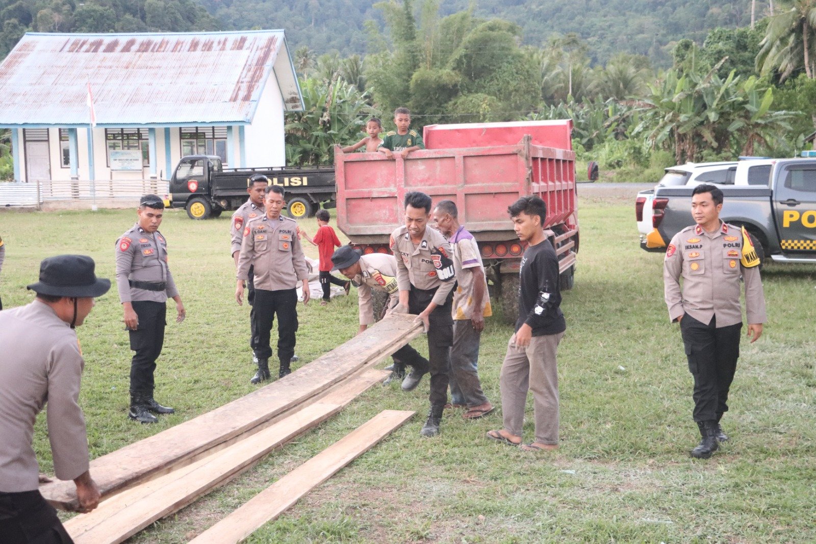 Proses distribusi logistik tahap pertama dipimpin langsung Wakapolres Halsel, Kompol Iksan Prananto, S.I.K., M.H. bertempat di Polres Halmahera Selatan, Rabu (4/2) kemarin. Material yang disalurkan berupa semen, besi, dan kayu melalui jalur darat dan diterima langsung oleh perangkat Desa Kaireu.