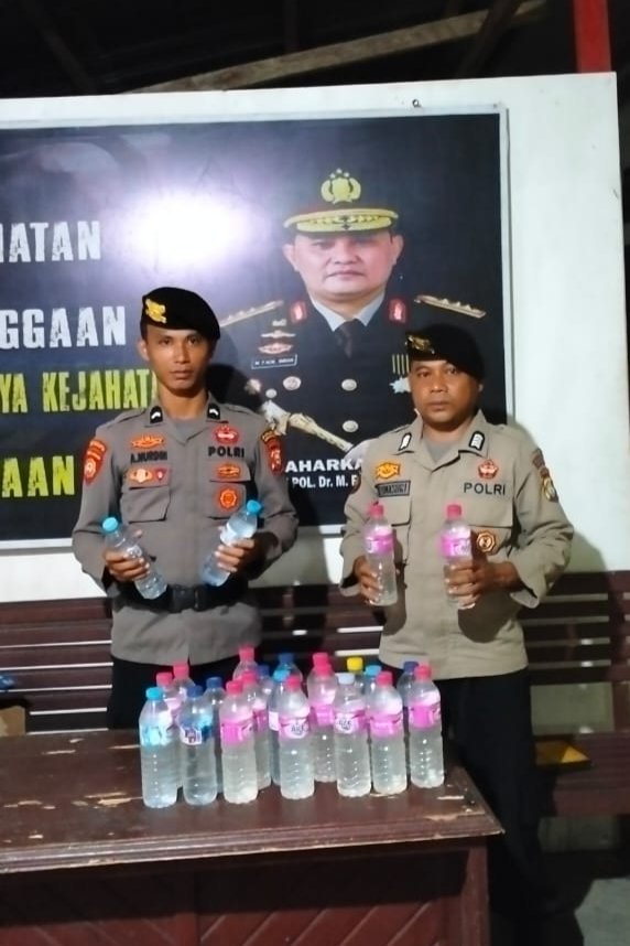 “Jumlah minuman keras yang ditemukan sebanyak 1 (Satu) Karton dos Aqua sebanyak 24 botol air mineral sedang ukuran 600 ml.” Ucapnya.