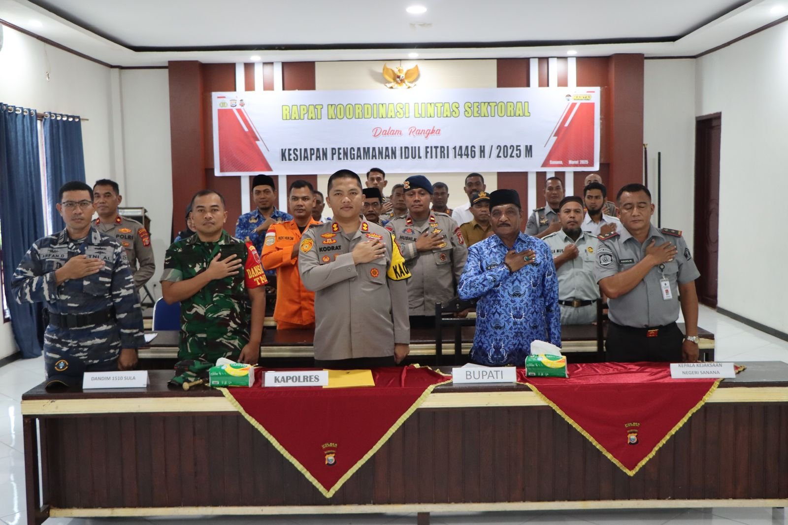 Rapat koordinasi ini bertujuan untuk menyamakan persepsi dan tindakan dalam menjaga keamanan masyarakat selama perayaan Idul Fitri.