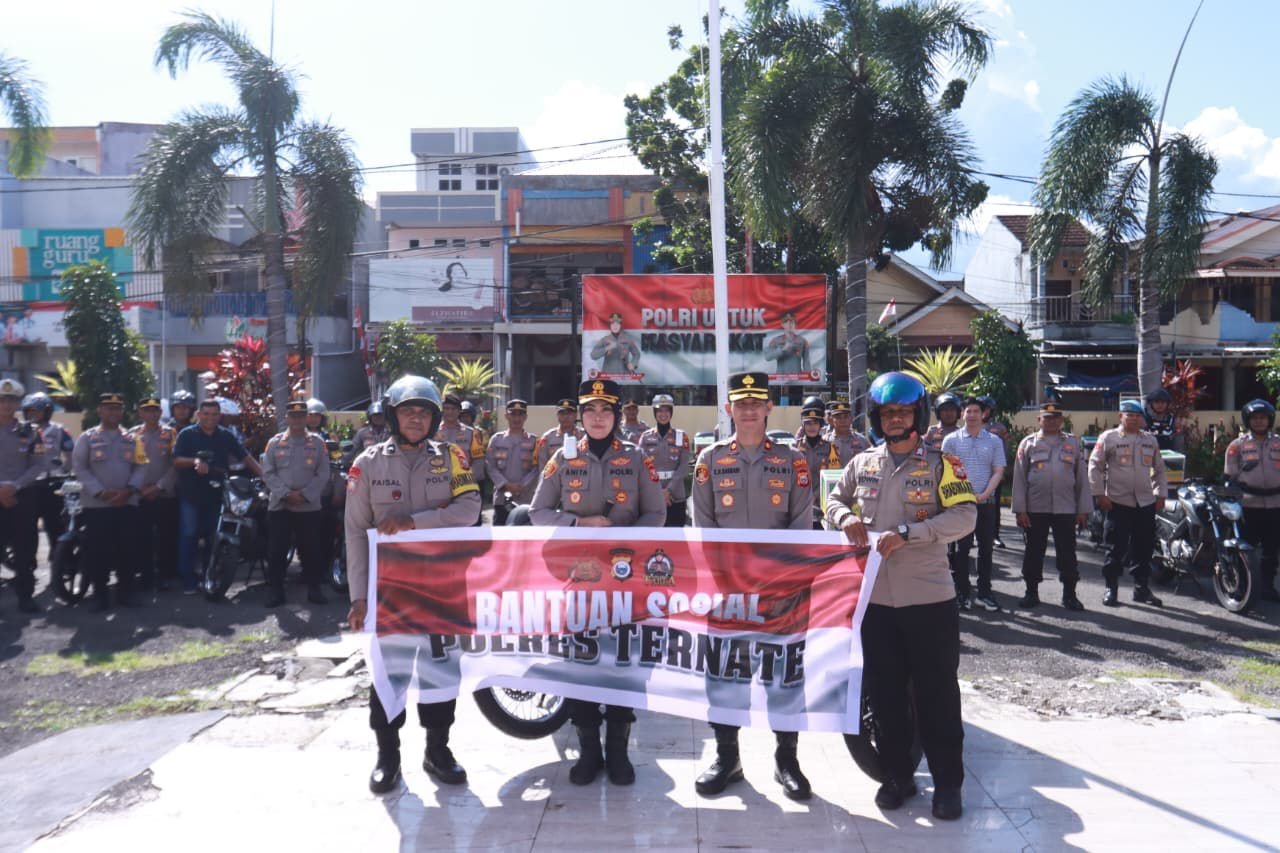 Penyaluran bansos tersebut dipimpin langsung oleh Kapolres Ternate AKBP Anita Ratna Yulianto, S.I.K., M.H., dan dihadiri oleh seluruh jajaran pimpinan serta personel Polres Ternate.