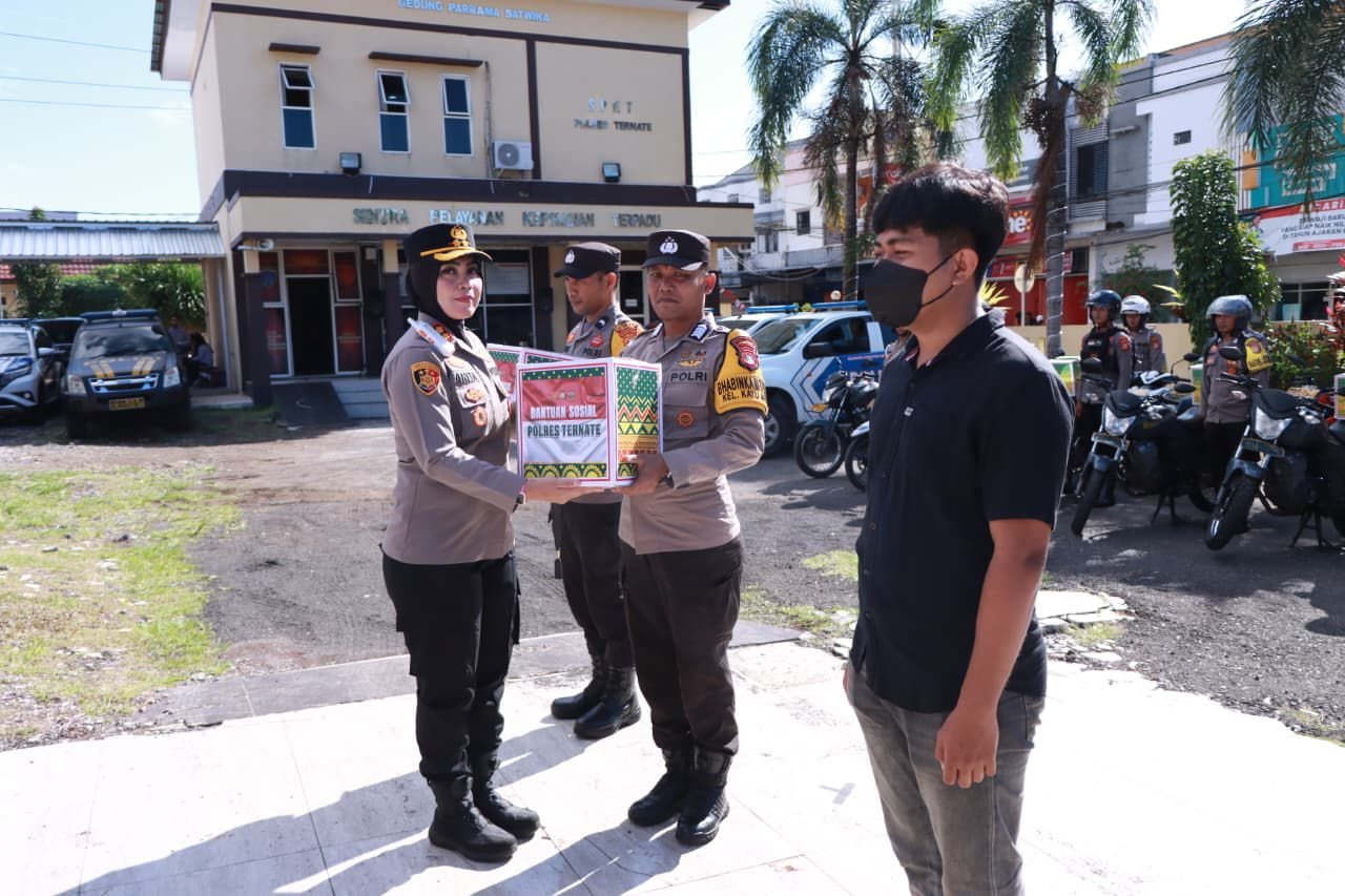 Polres Ternate Kembali menunjukkan kepeduliannya dengan menyalurkan bantuan sosial (bansos) kepada 250 keluarga yang membutuhkan bertempat di Lapangan Apel Polres Ternate, Kamis (25/9).