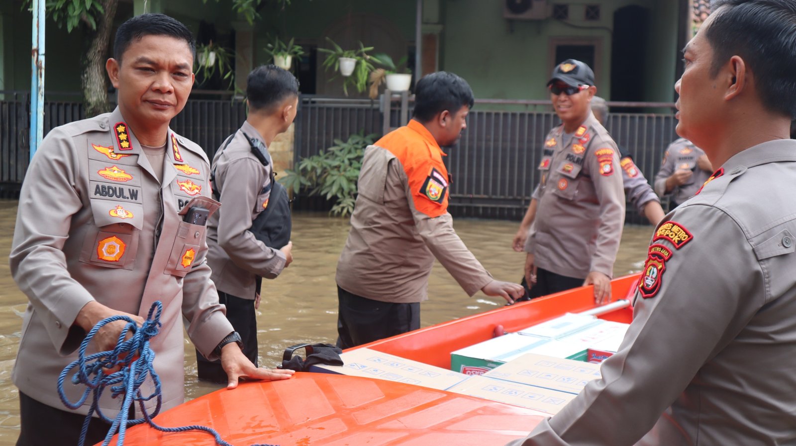 Kepolisian Negara Republik Indonesia melalui jajaran Polda Metro Jaya dan Polres setempat turun langsung membantu warga yang terdampak banjir di sejumlah wilayah di Bekasi dan Depok.