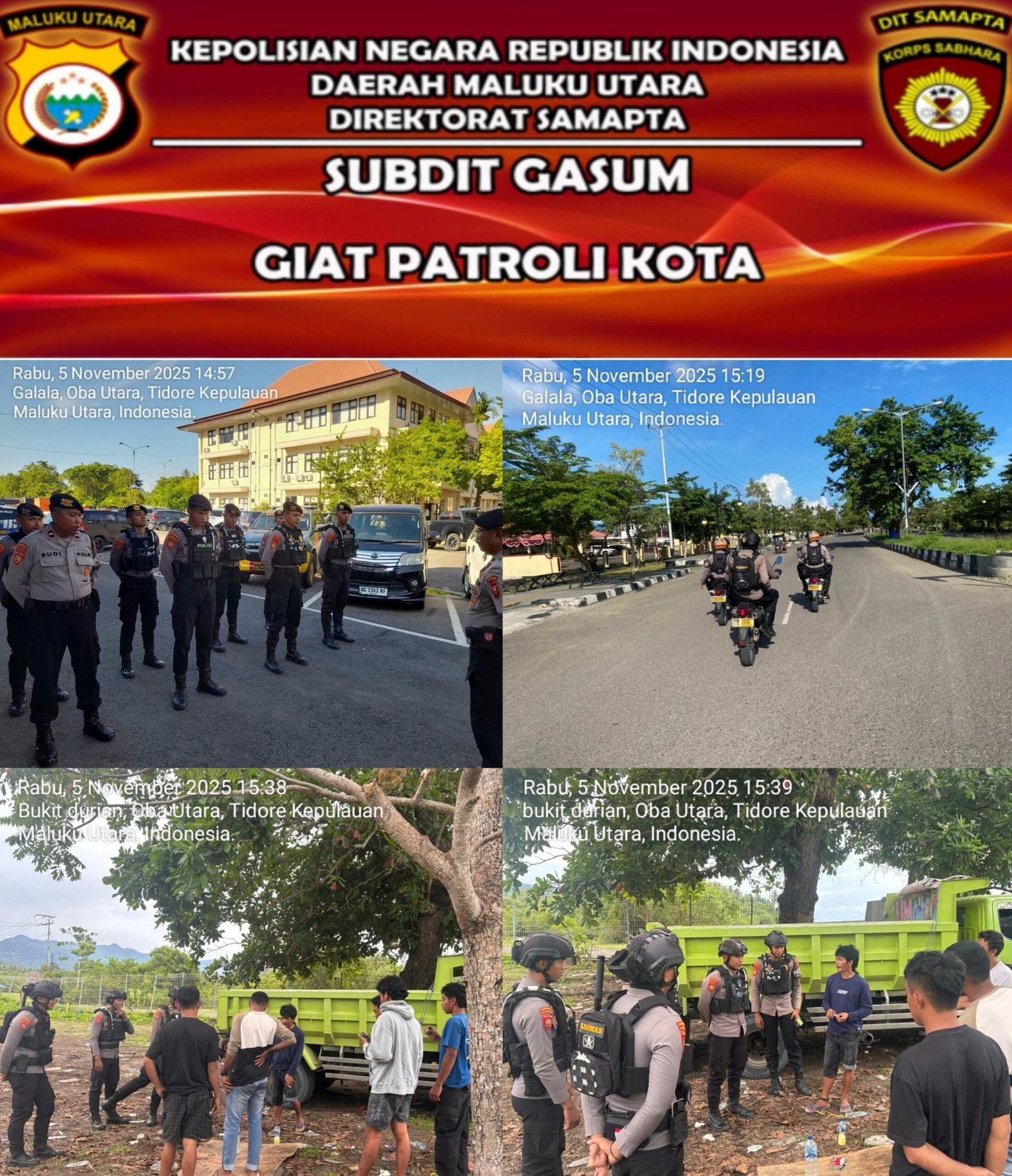 Direktorat Samapta Polda Maluku Utara akan terus meningkatkan kegiatan patroli preventif dan dialogis sebagai wujud nyata komitmen Polri dalam menciptakan rasa aman dan nyaman di tengah masyarakat.