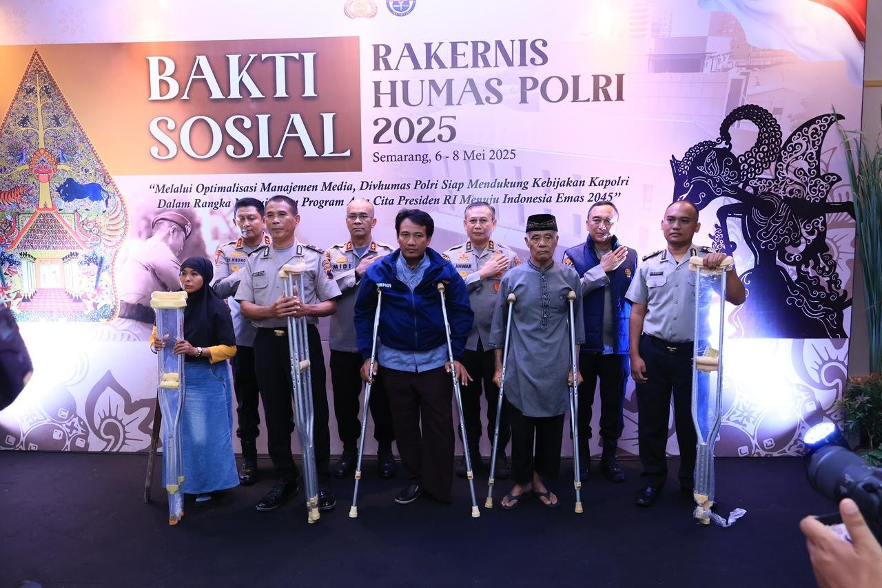 Semarang – Rapat Kerja Teknis (Rakernis) Humas Polri 2025 resmi dibuka di Gedung Serbaguna Akademi Kepolisian (Akpol), Semarang, Jawa Tengah, Selasa (6/5) dengan Mengusung tema “Melalui Optimalisasi Manajemen Media, Divhumas Polri Siap Mendukung Kebijakan Kapolri dalam rangka Mewujudkan Program Asta Cita Presiden RI Menuju Indonesia Emas 2045”, kegiatan diawali dengan rangkaian bakti sosial dan bakti kesehatan sebagai wujud kepedulian sosial Polri terhadap masyarakat.