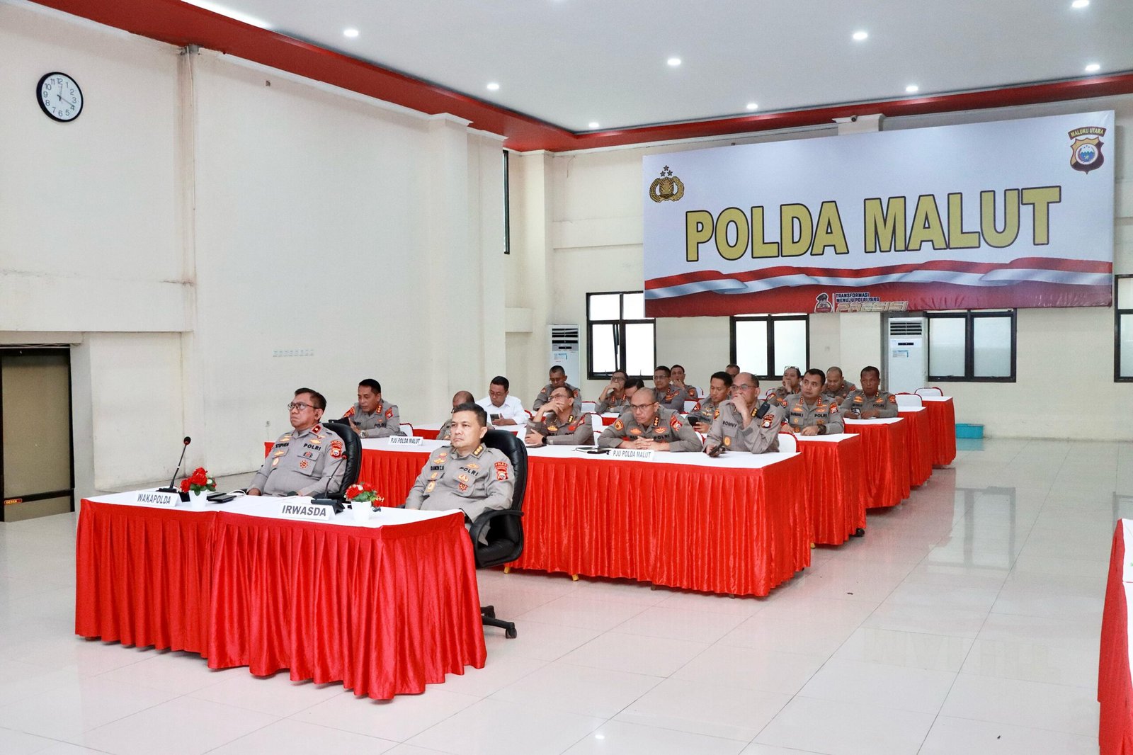 Kegiatan ini dihadiri oleh Wakil Kepala Kepolisian Daerah Maluku Utara Brigjen Pol. Stephen M. Napiun, S.I.K, S.H., M.Hum. Irwasda Polda Maluku Utara Kombes Pol. Ramon Zamora Ginting, S.I.K. beserta sejumlah pejabat utama Polda Maluku Utara.