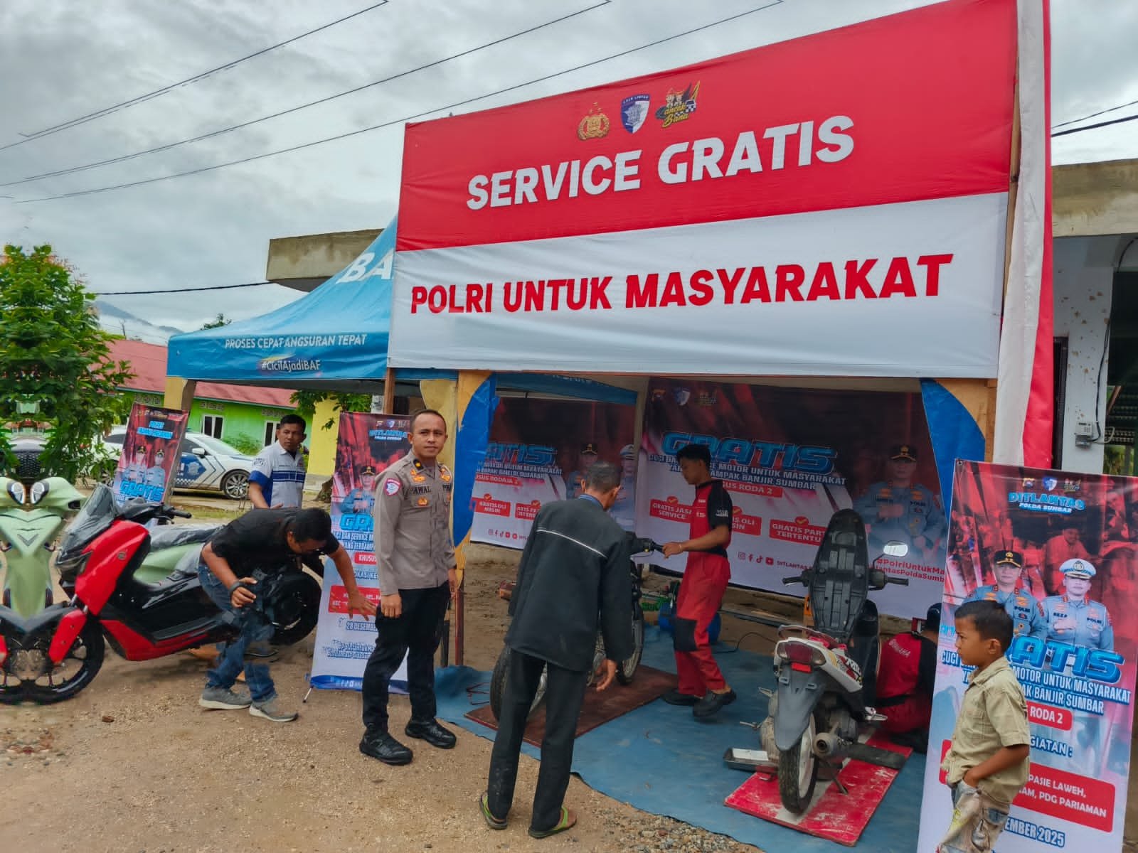 “Polri hadir untuk membantu masyarakat yang terdampak bencana. Melalui pelayanan servis kendaraan gratis ini, kami berharap dapat meringankan beban warga serta membantu memulihkan kembali aktivitas dan mobilitas masyarakat,” ujar Kombes Pol Erdi A. Chaniago.