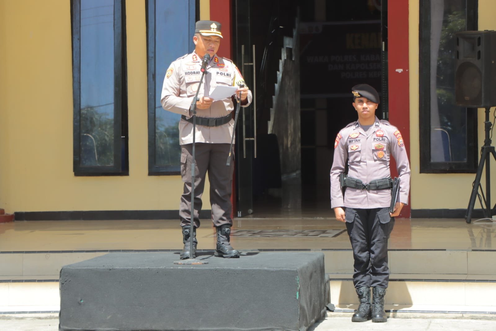 “Kapolres menegaskan agar melaksanakan tugas dan tanggung jawab serta melaksanakan tugas memimpin, membina, mengawasi, mengatur dan mengendalikan satuan organisasi dilingkungan dan unsur pelaksana kewilayahan dalam jajarannya termasuk kegiatan pengamanan dan pelayanan kepada masyarakat.” Tegas Kapolres.