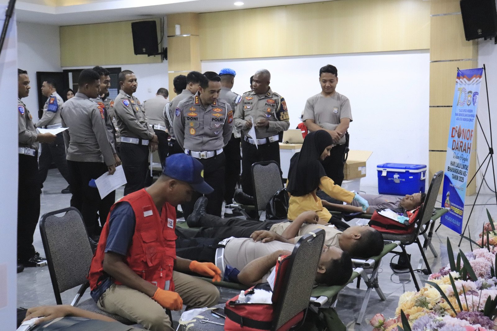 Sambut Hari Ulang Tahun Lalu Lintas yang ke-70 Ditlantas Polda Maluku Utara menggelar kegiatan bakti sosial donor darah bertempat di di Aula Patriatama Direktorat Lalu Lintas Polda Malut, Kota Ternate, Kamis (11/9) kemarin. Kegiatan yang berlangsung penuh khidmat ini bertujuan untuk memperkuat komitmen kepolisian dalam memberikan kontribusi nyata bagi kesehatan masyarakat.