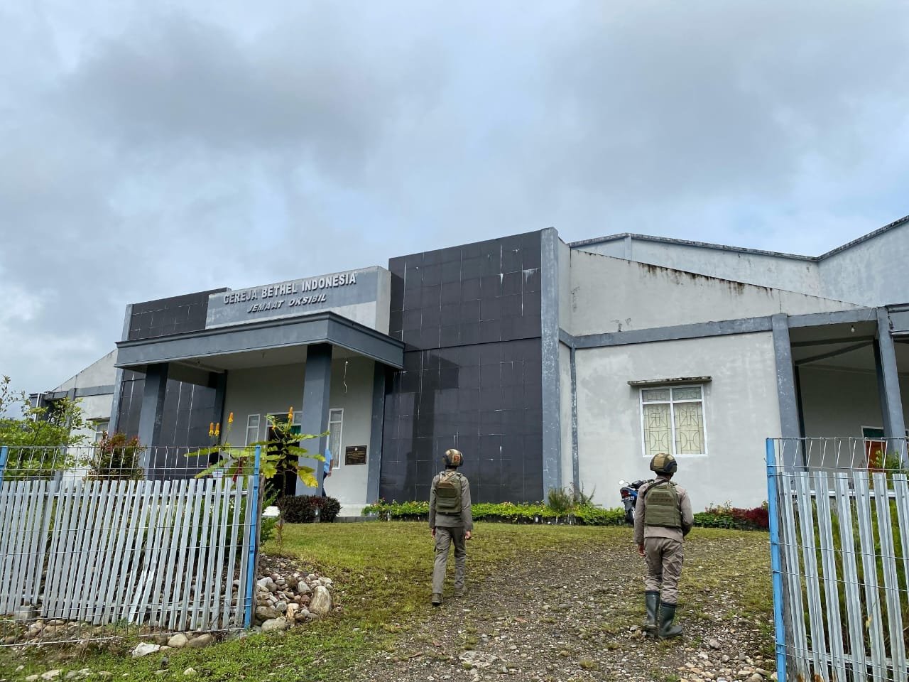 Pegunungan Bintang – personel Operasi Damai Cartenz-2025 melaksanakan pengamanan ibadah Minggu di Gereja Bethel Indonesia, Distrik Oksibil, Kabupaten Pegunungan Bintang. Kehadiran aparat keamanan ini bertujuan untuk memastikan kelancaran dan keamanan jalannya ibadah bagi jemaat yang hadir.