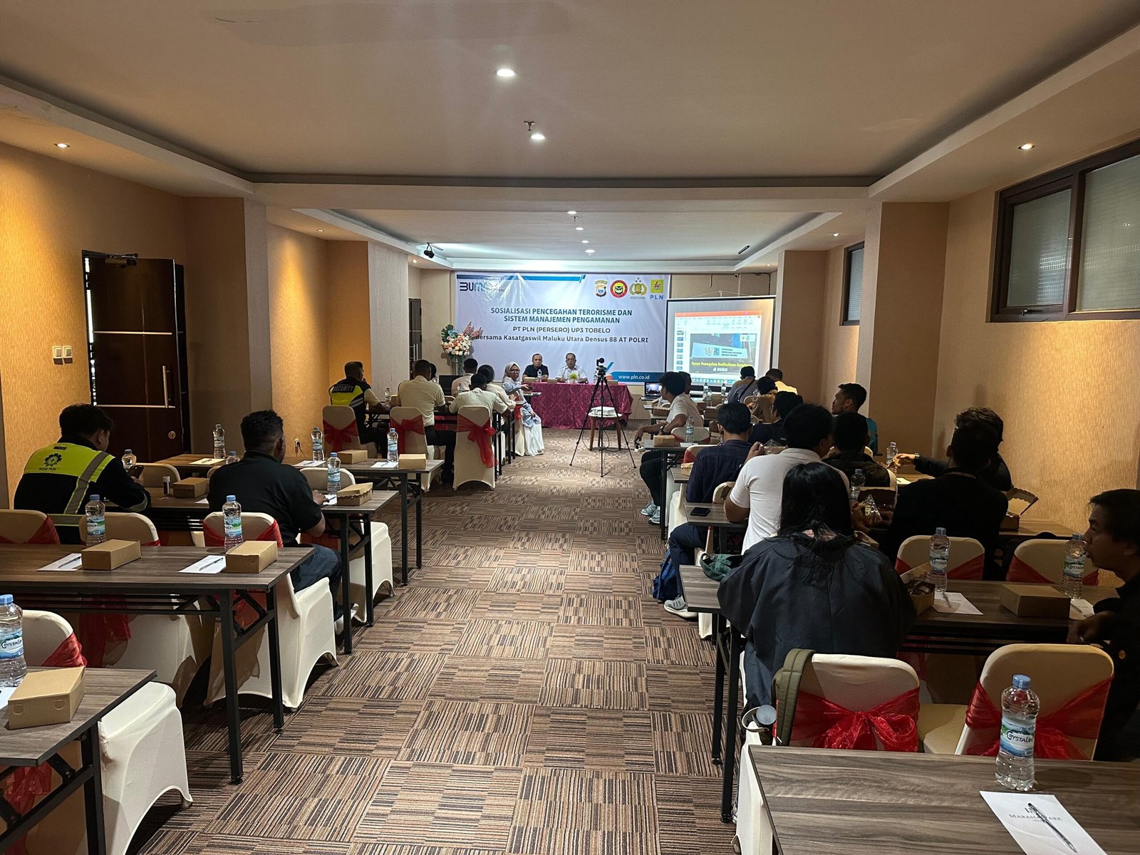 Satgaswil Maluku Utara Densus 88 AT Polri mengadakan kegiatan sosialisasi untuk mencegah penyebaran paham intoleransi, radikalisme, dan terorisme bagi staf dan pegawai PT PLN (Persero) UP 3 Tobelo. Kegiatan ini diselenggarakan di Aula Hotel Marahai Park, Jl. Kemakmuran, Wosia, Kabupaten Halmahera Utara.