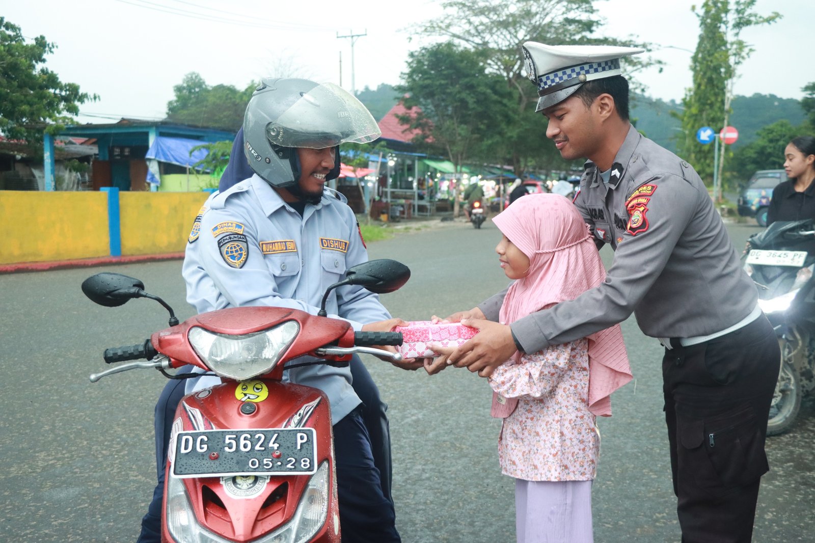 Iptu Masqun menyampaikan bahwa kegiatan ini merupakan bagian dari upaya Satlantas Polres Halteng untuk lebih dekat dengan masyarakat serta menanamkan nilai-nilai kepedulian sosial sejak dini kepada anak-anak.