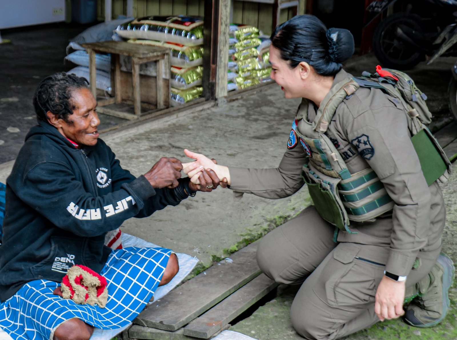 Tak hanya berbincang, Brigpol Ita juga membeli sejumlah barang dagangan dari para mama-mama Papua, seperti sayur-mayur, buah-buahan, serta hasil bumi lainnya. Langkah ini merupakan bentuk dukungan kepada para pedagang kecil agar tetap semangat dalam menjalankan usaha mereka.