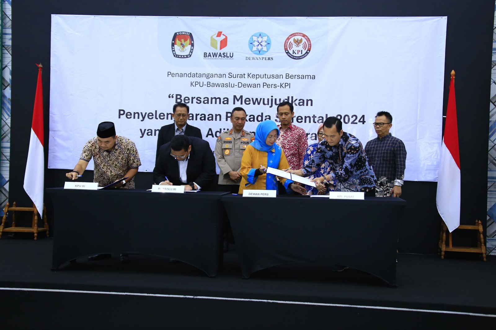 Jakarta. Kadivhumas Polri Irjen. Pol. Sandi Nugroho menghadiri penandatanganan Surat Keputusan Bersama (SKB) KPU, Bawaslu, KPI, dan Dewan Pers. SKB tersebut mengenai pembentukan Gugus Tugas Pemantauan Pemberitaan Pilkada 2024.