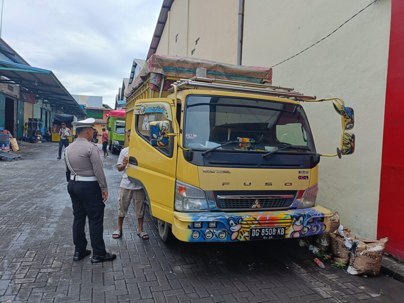 Sat Lantas Polres Ternate melaksanakan sosialisasi dan Himbauan kepada pemilik usaha dan pengendara mobil Truck tentang aturan dan tata tertib berlalu lintas, serta ketentuan mengenai cara pemuatan daya angkut, Ternate ,( 09/07/2025)