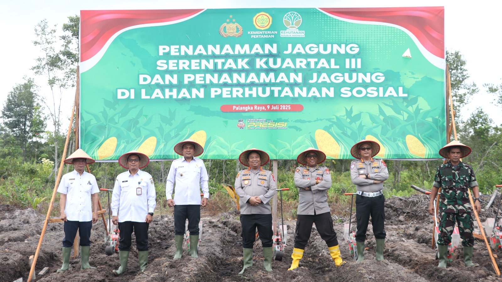 Rakumpit – Polda Kalimantan Tengah bersama Polresta Palangka Raya melaksanakan Penanaman Jagung Serentak Kuartal III di lahan Perhutanan Sosial Jl. Tumbang Telaken, Kel. Pager, Kec. Rakumpit, Kota Palangka Raya, Rabu (9/7/2025).