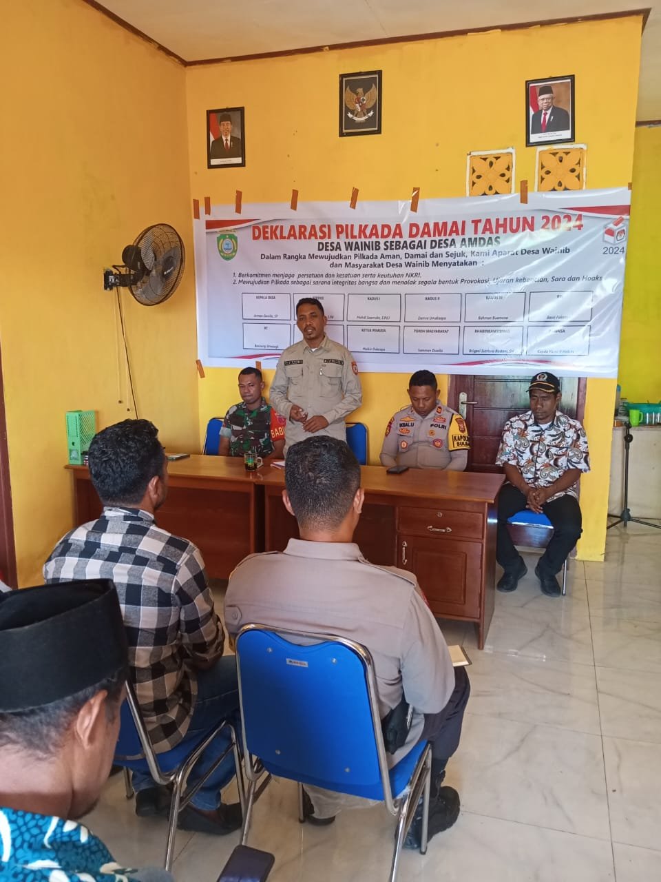 “Kepada seluruh aparat Desa maupun parah tokoh serta seluruh masyarakat Desa Wainib untuk sama-sama mencegah ujaran kebencian khususnya dalam momen pilkada berlangsung.” Ujar Kapolsek.
