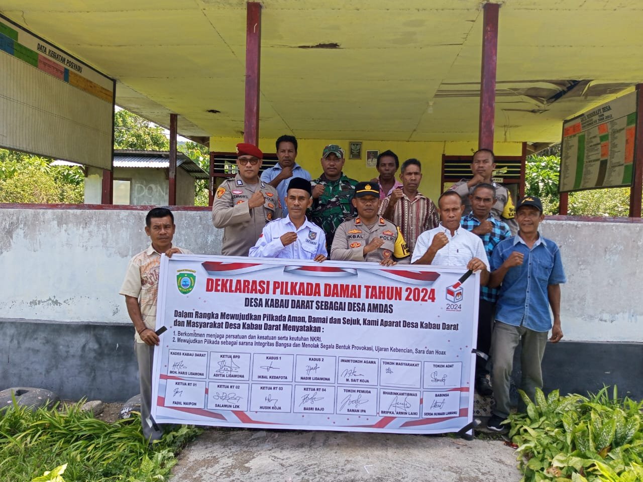 Polres Kepulauan Sula- Kapolsek Sulabesi Barat IPTU Ikbal Umanailo, S.H, Menghadiri Kegiatan Deklarasi Damai Untuk Sukseskan Pilkada 2024 di Kabupaten Kepulauan Sula, yang berlangsung di Aula Kantor Desa Kabau Darat, Sabtu (9/11/24).
