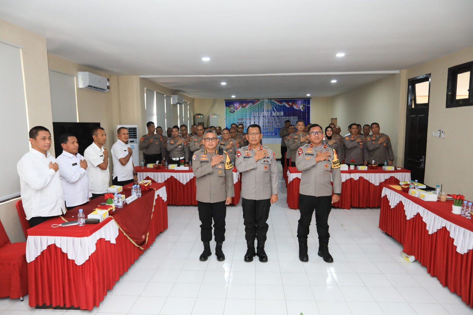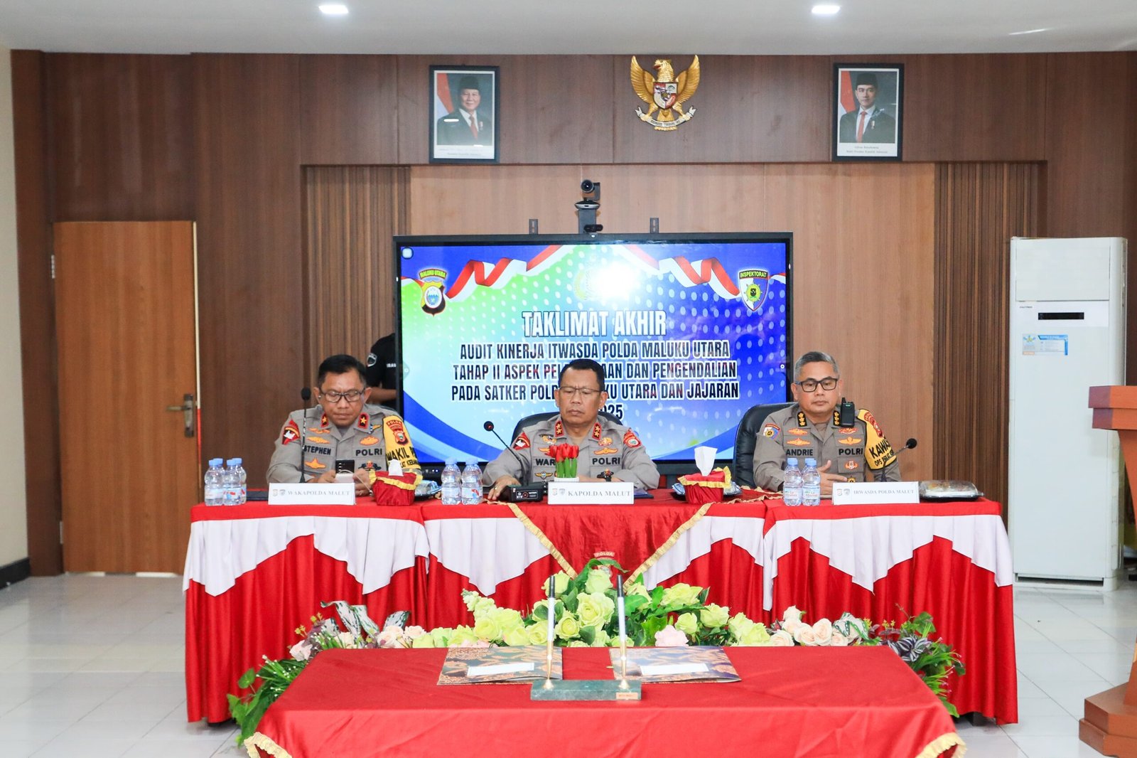 HUMAS POLDA MALUT – Kepala Kepolisian Daerah Maluku Utara menghadiri acara Taklimat Akhir Audit Kinerja Itwasda Polda Malut Tahap II Tahun Anggaran 2025 aspek pelaksanaan dan pengendalian pada satker dan satwil jajaran Polda Malut, pada Selasa, (9/12/2025).