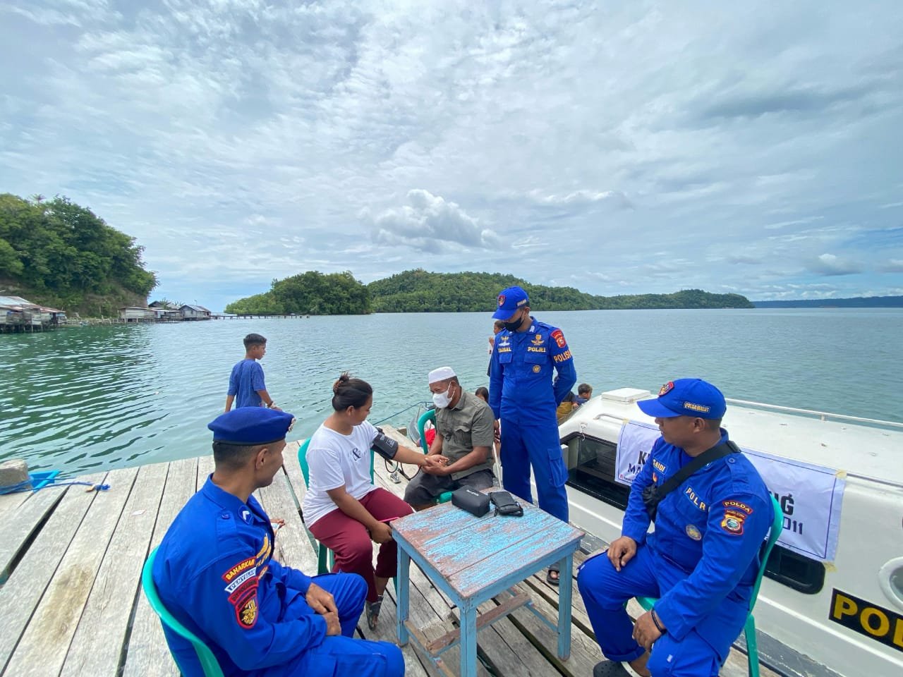 Untuk meningkatkan akses layanan kesehatan bagi masyarakat di wilayah pesisir, Direktorat Polairud Polda Maluku Utara melalui Markas Unit Weda KP.XXX-1011 melaksanakan kegiatan rutin yakni Klinik Terapung, di Desa Sidanga, Kecamatan Weda, Kabupaten Halmahera Tengah.
