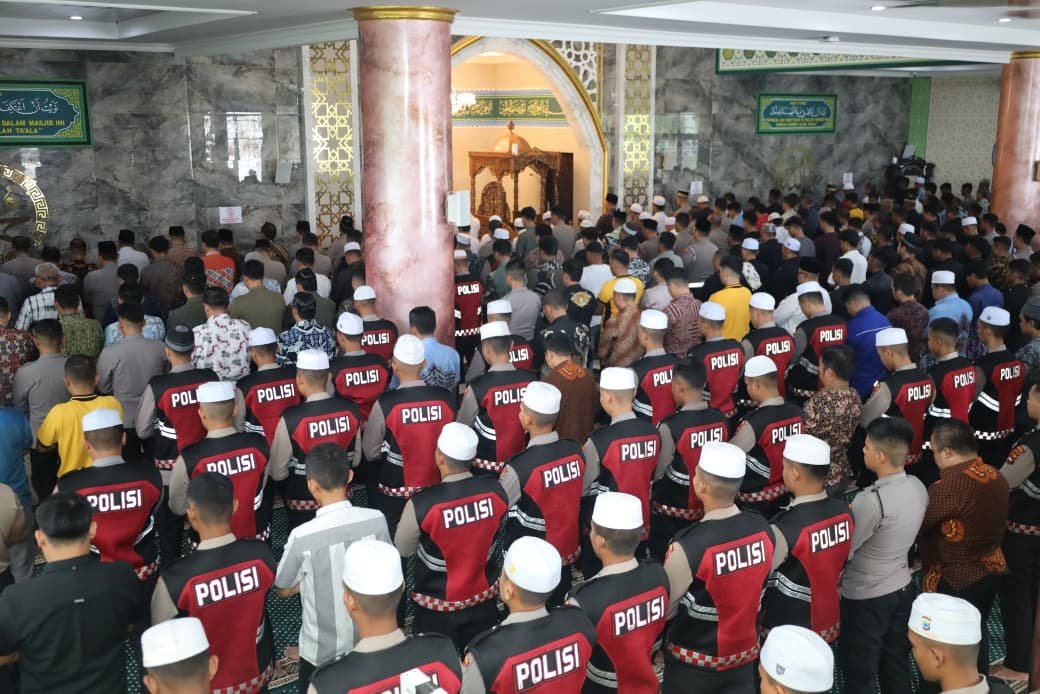 Shalat ghaib dilaksanakan di Masjid Riyadus Shalihin Polda Kalsel, Banjarbaru, Jumat (29/8/2025), setelah pelaksanaan shalat Jumat yang dihadiri oleh Kapolda Kalsel, Irwasda Polda Kalsel, Pejabat Utama Polda Kalsel, personel Polri dan ASN Polda Kalsel.