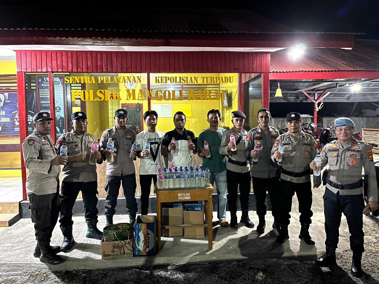 Kegiatan tersebut dipimpin langsung oleh Kapolsek Mangoli Barat, Ipda Faisal Pora, S.I.P., yang berhasil menyita puluhan botol miras jenis cap tikus.