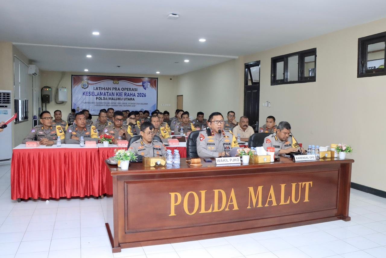 Dalam rangka menciptakan kondisi keamanan, keselamatan, ketertiban, dan kelancaran lalu lintas (Kamseltibcarlantas) yang kondusif menjelang bulan suci Ramadhan dan Idul Fitri, Kepolisian Daerah Maluku Utara resmi menggelar Latihan Pra Operasi (Latpraops) Keselamatan Kie Raha 2026. Jumat (30/1).