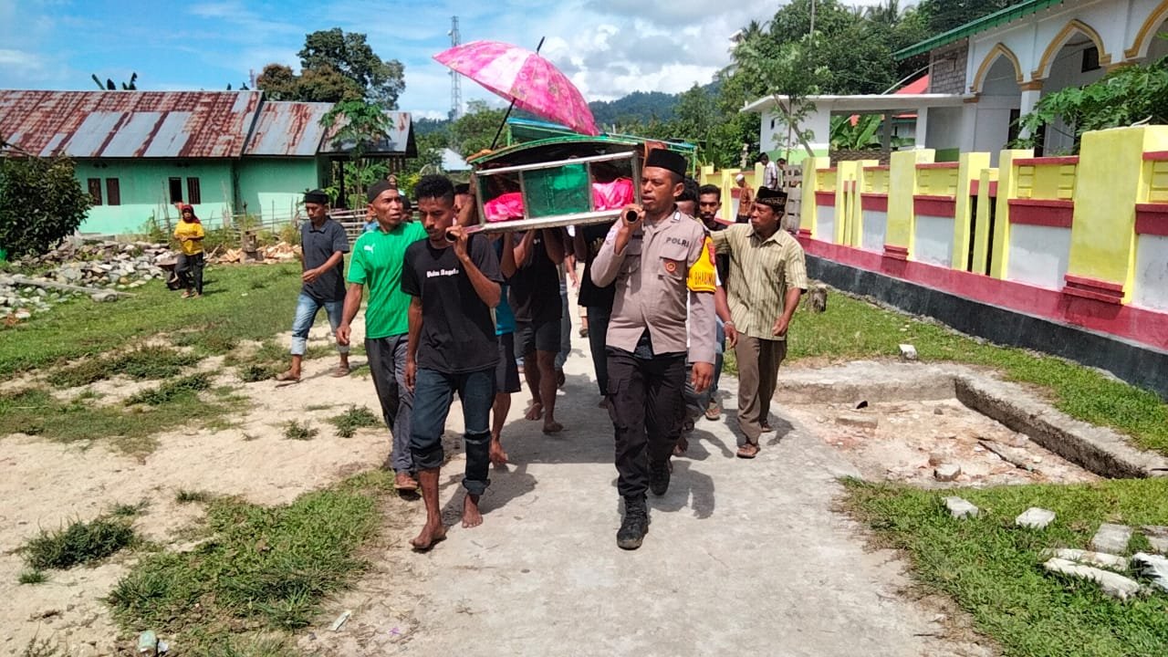 Polres Kepulauan Sula- Pada Selasa (15/10/24), Bhabinkamtibmas Desa Kou, Bripka Syahril Watiwa, turut hadir dalam prosesi pemakaman salah satu warga di Desa Kou, Kecamatan Mangoli Timur, Kabupaten Kepulauan Sula.