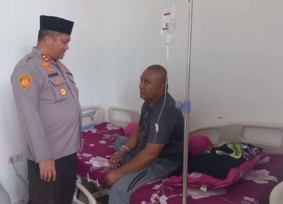 Kapolres Kepulauan Sula AKBP Kodrat Muh Hartanto, S.I.K, menjenguk Kabag SDM AKP Mohtar Saniapon yang sedang dirawat di Rumah Sakit Umum Sanana.