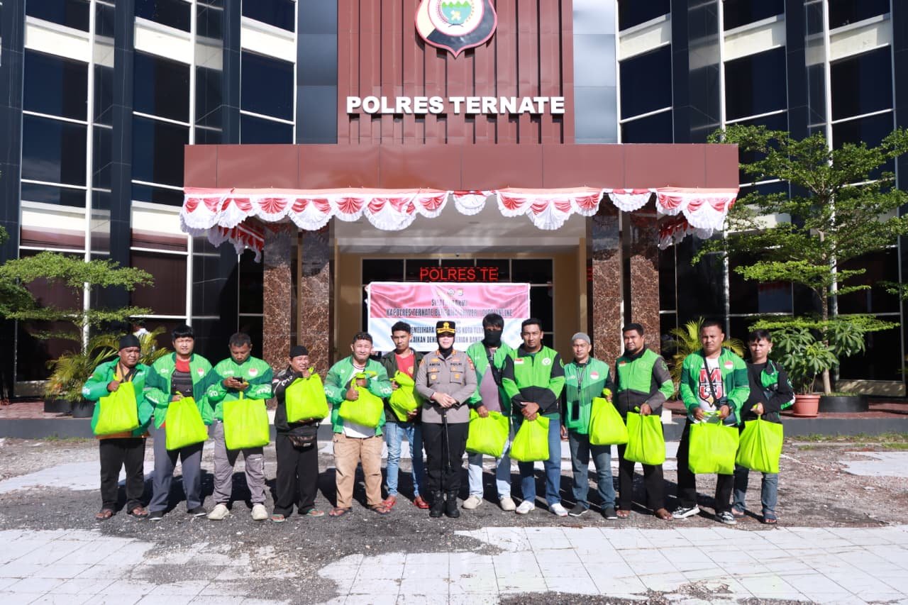 Dalam wujud nyata bakti dan kepedulian kepada masyarakat Kapolres Ternate AKBP Anita Ratna Yulianto, S.I.K., M.H. membagikan bantuan sosial (bansos) kepada 50 driver ojek online (ojol) di Mako Polres Ternate, Senin (20/10) kemarin.